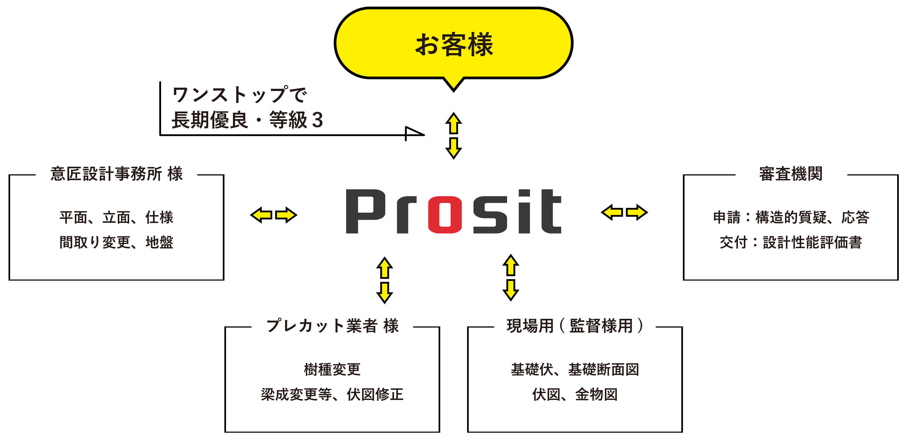 木造住宅の構造計算について、お客様はプロジットへのご依頼のみでOK、プロジットがワンストップで承りますので、お気軽にご相談ください。